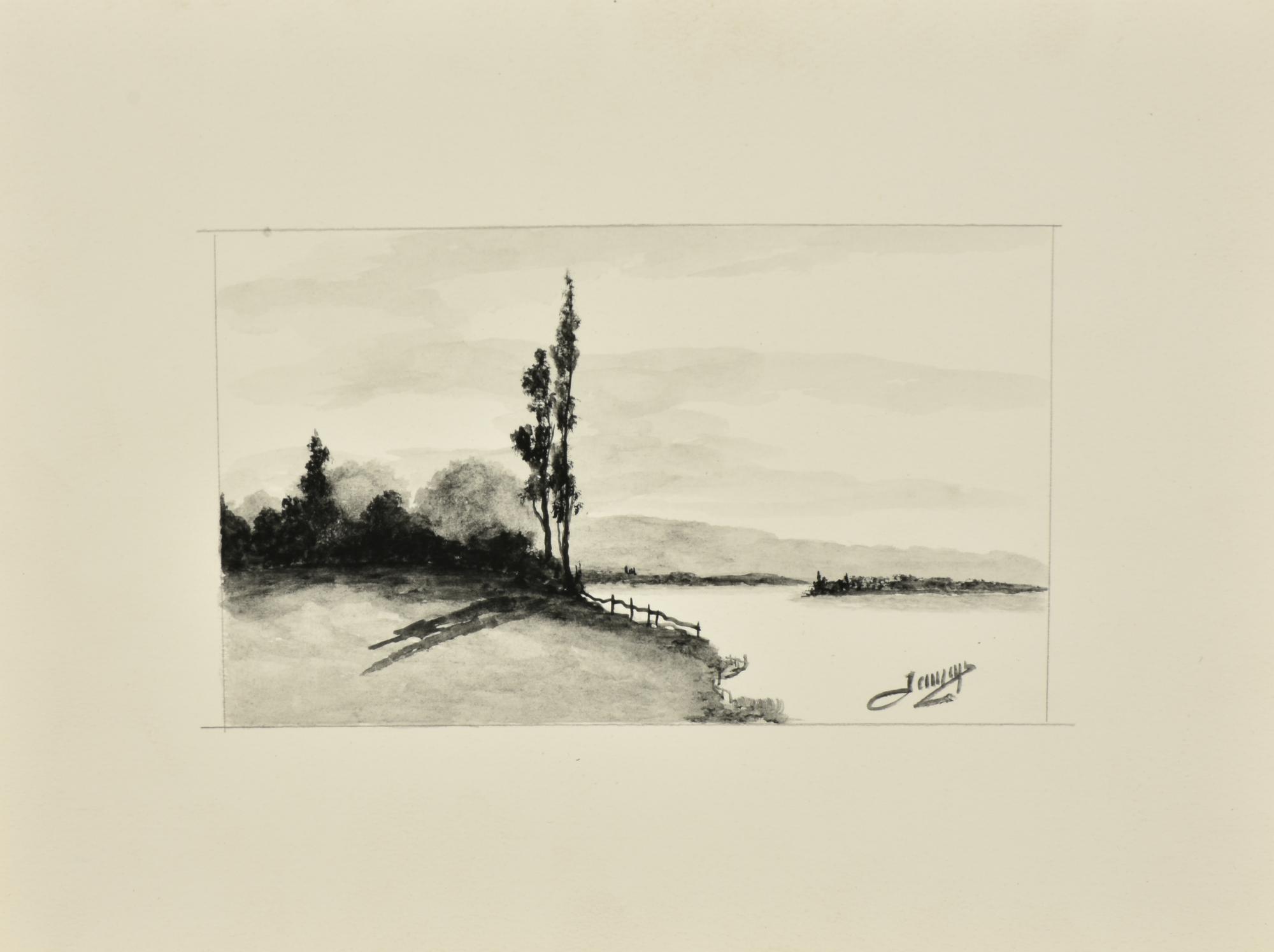 Angelo Zanzago PAESAGGIO tecnica mista su carta, cm 23,6x31,5 firma sul...