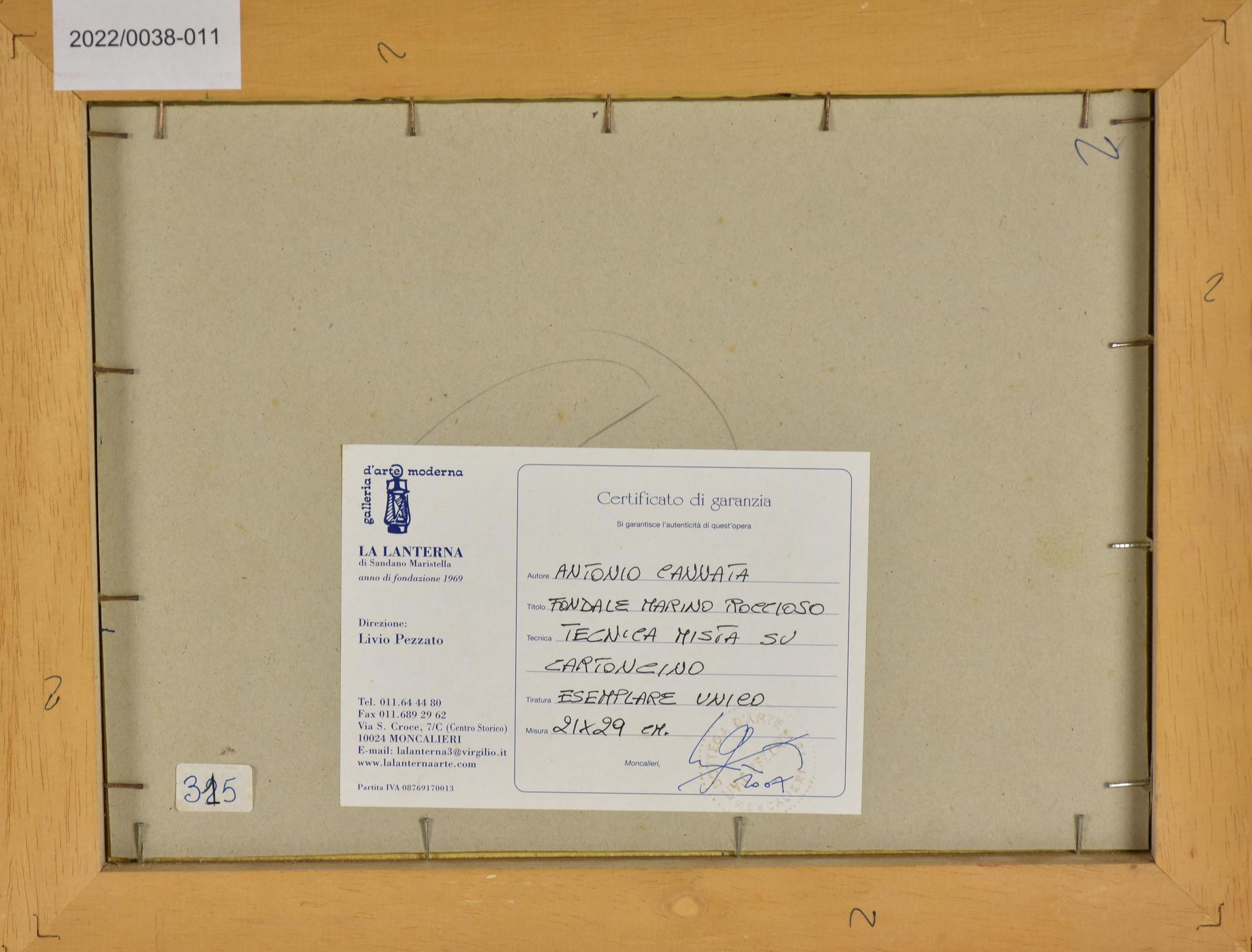 Antonio Cannata FONDALE MARINO ROCCIOSO tecnica mista su cartoncino, cm 21x29...