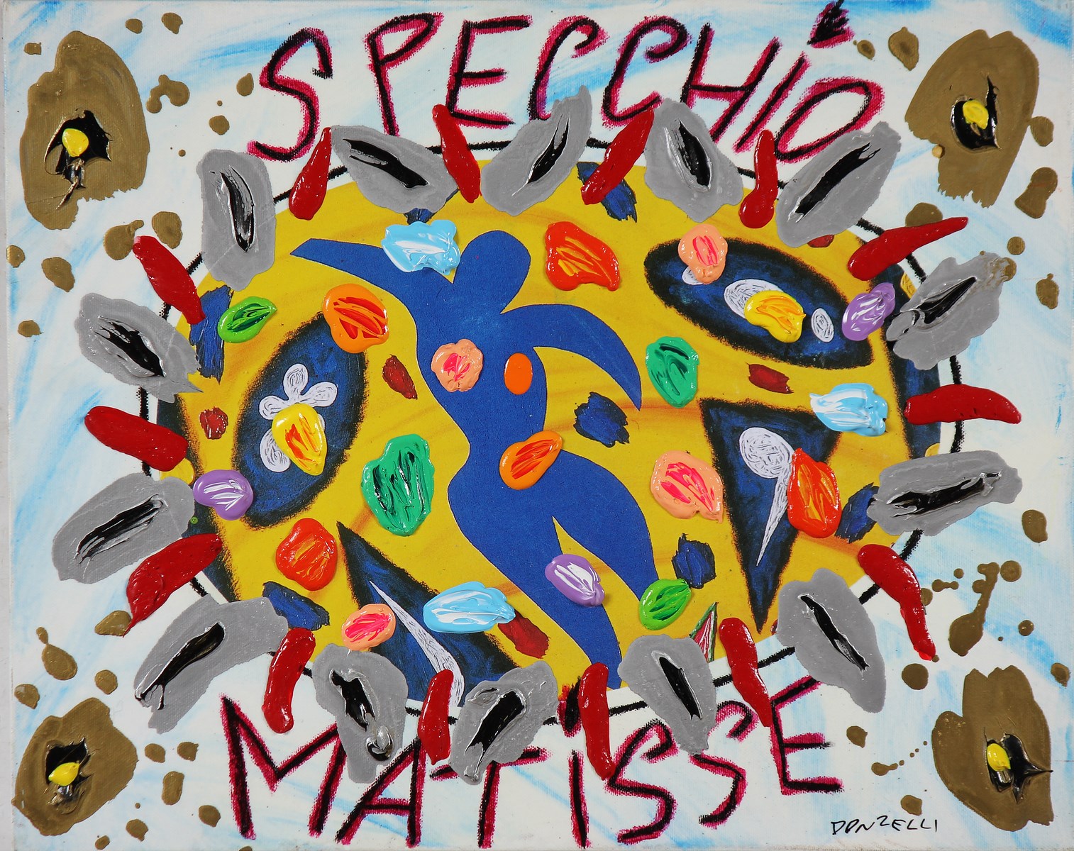 DONZELLI BRUNO (n. 1941) Specchio Matisse. Tecnica mista su tela. Cm 50,00 x 40,00 x 2,00. Firma in basso a destra. Al retro firma e titolo.
