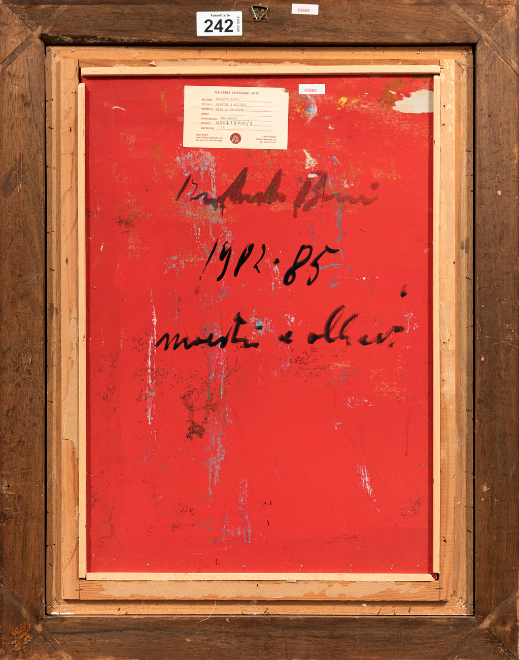 Etichetta della Galleria Leonardo Arte al retro