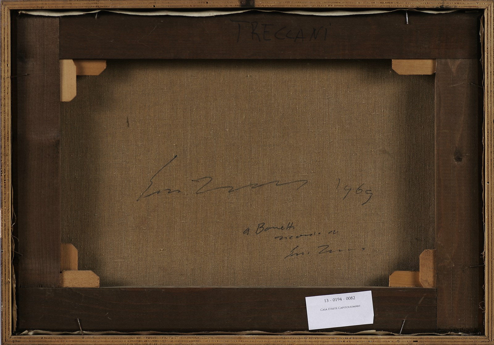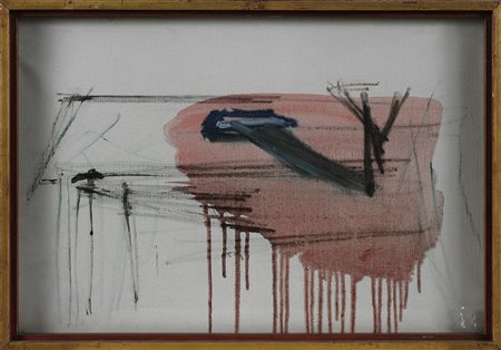 TRECCANI ERNESTO (1920 - 2009) Senza titolo. 1969. Tecnica mista su tela. Cm 50,00 x 35,00. Al retro firma e data. Cornice presente