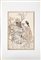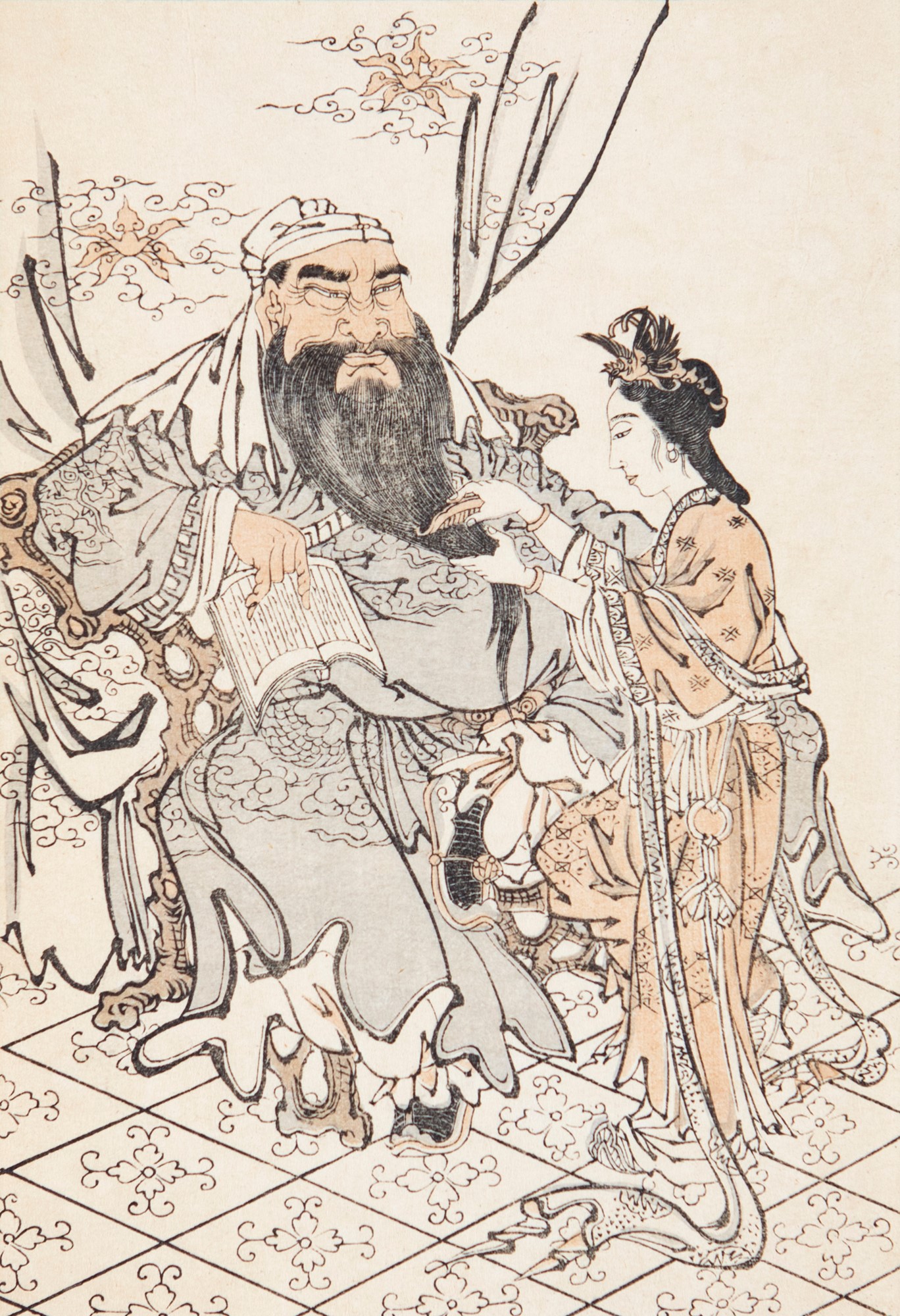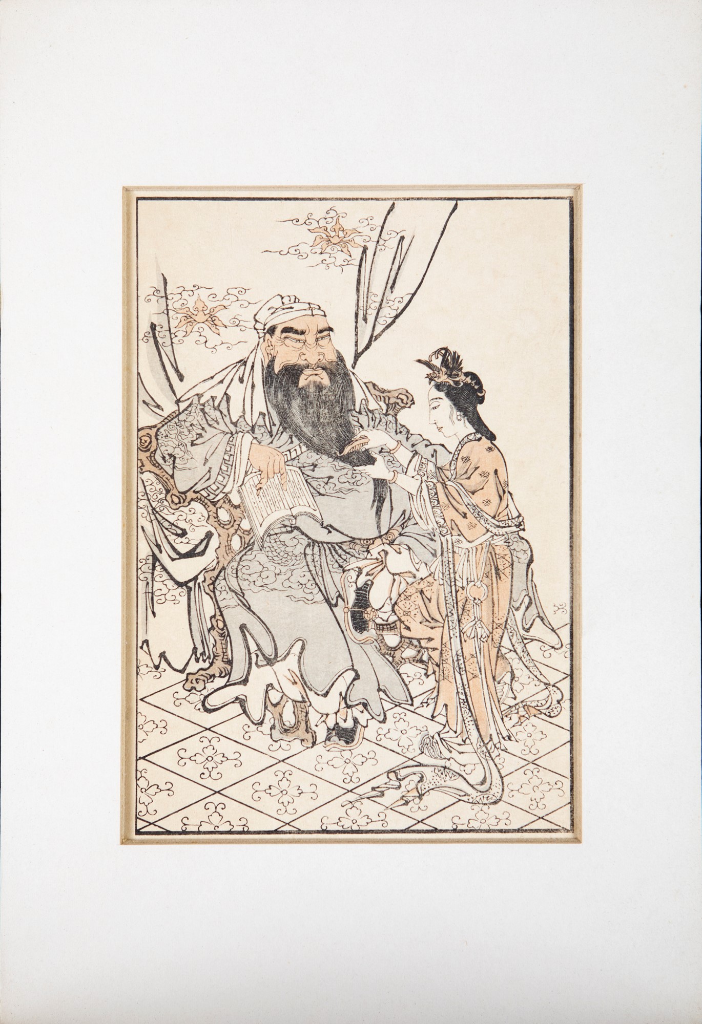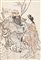 Figure teatrali dell'opera cinese, china su carta uomo dalla lunga barba pettinata da una geisha, cm 20,5x14 - con il passepartout: cm 34x23
