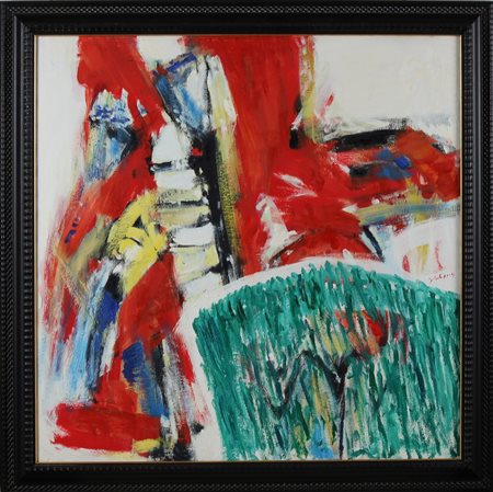 TIRLA GHEORGHE (n. 1965) Senza titolo. 2004. Olio su tela . Cm 100,00 x 100,00. Firma e data a destra. Al retro firma e data. In allegato all'opera catalogo Gheorghe Tirla a cura di Chiara Gattamelata, 2006. Cornice presente
