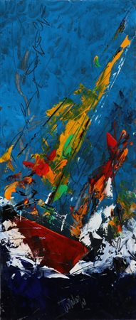 TORALDO FRANCESCO (n. 1960) Solitario. 2009. Acrilico su tavola. Cm 30,00 x 70,00. Firma in basso. Al retro firma, data e titolo. Autentica dell'artista su fotografia