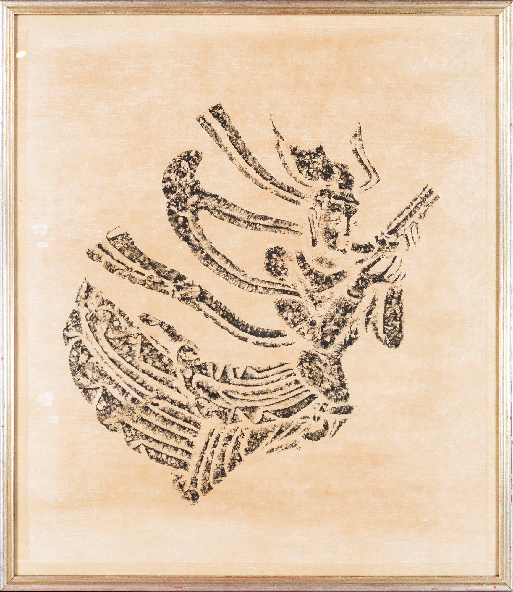 Stampa shibori su carta, Cina, fine XIX/inizio XX secolo raffigurante un geisha , cm 80x69 - con la cornice: cm 91x79