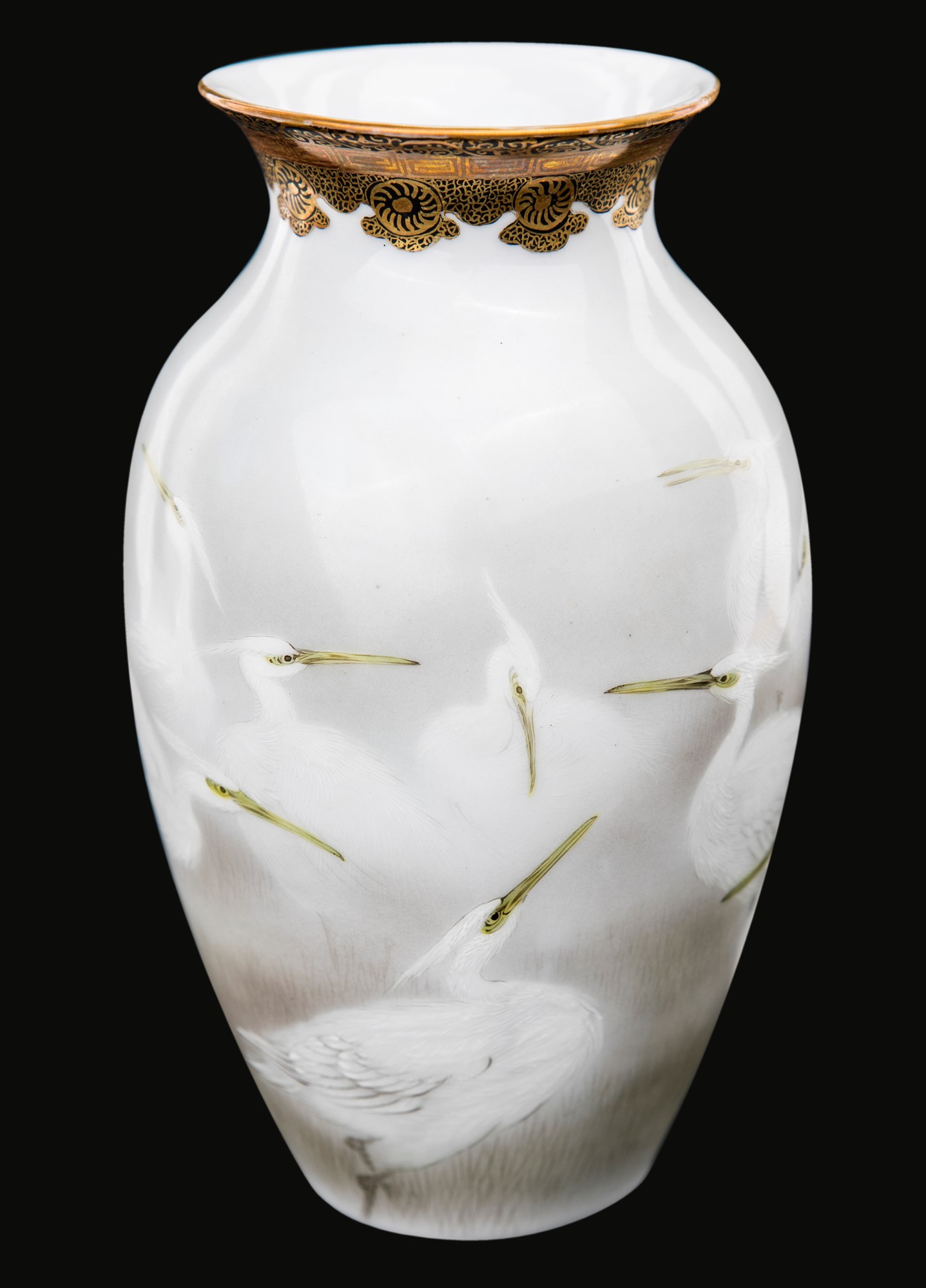 Piccolo vaso in porcellana, Giappone decorato da figure di airone, altezza cm 19