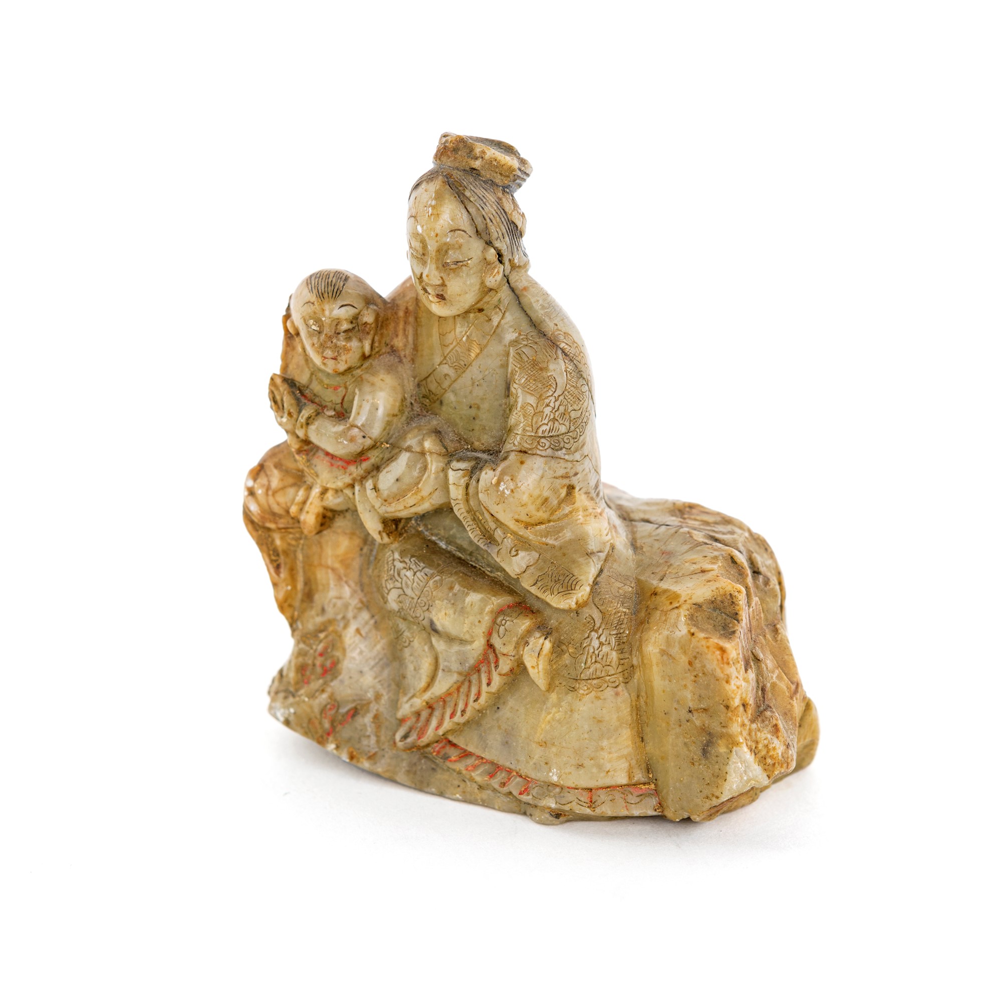 Intaglio in pietra dura, Cina, XX secolo raffigurante una donna con bambino, cm 10,5x9,5x6