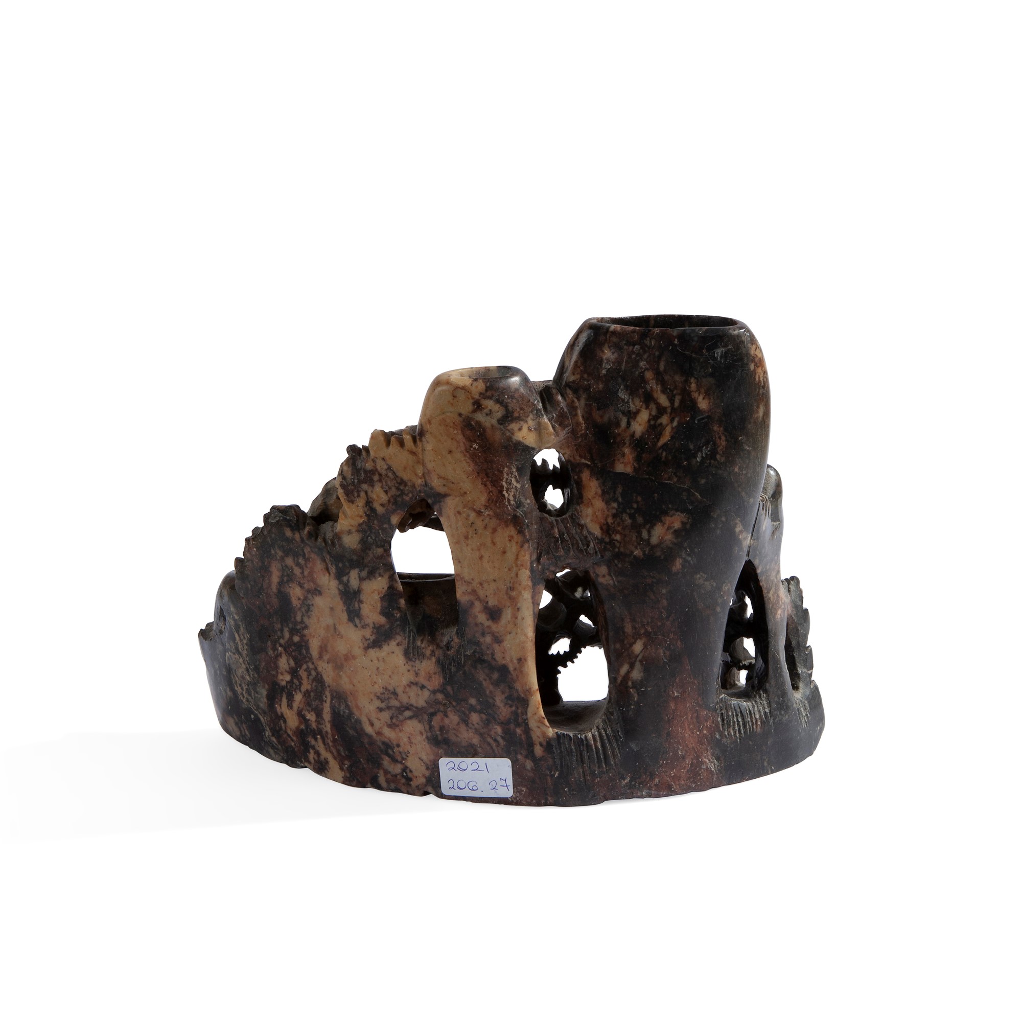 Composizione in pietra bruna con tre vaschette, Cina, XX secolo