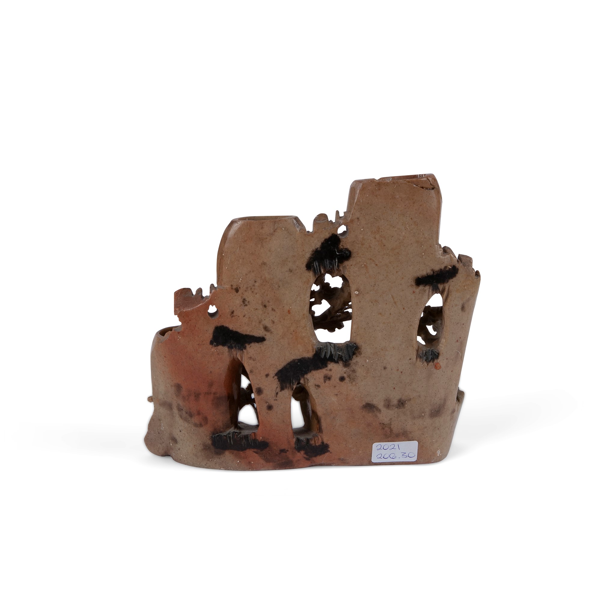 Gruppo in pietra saponaria maculata a quattro vaschette, Cina, XX secolo