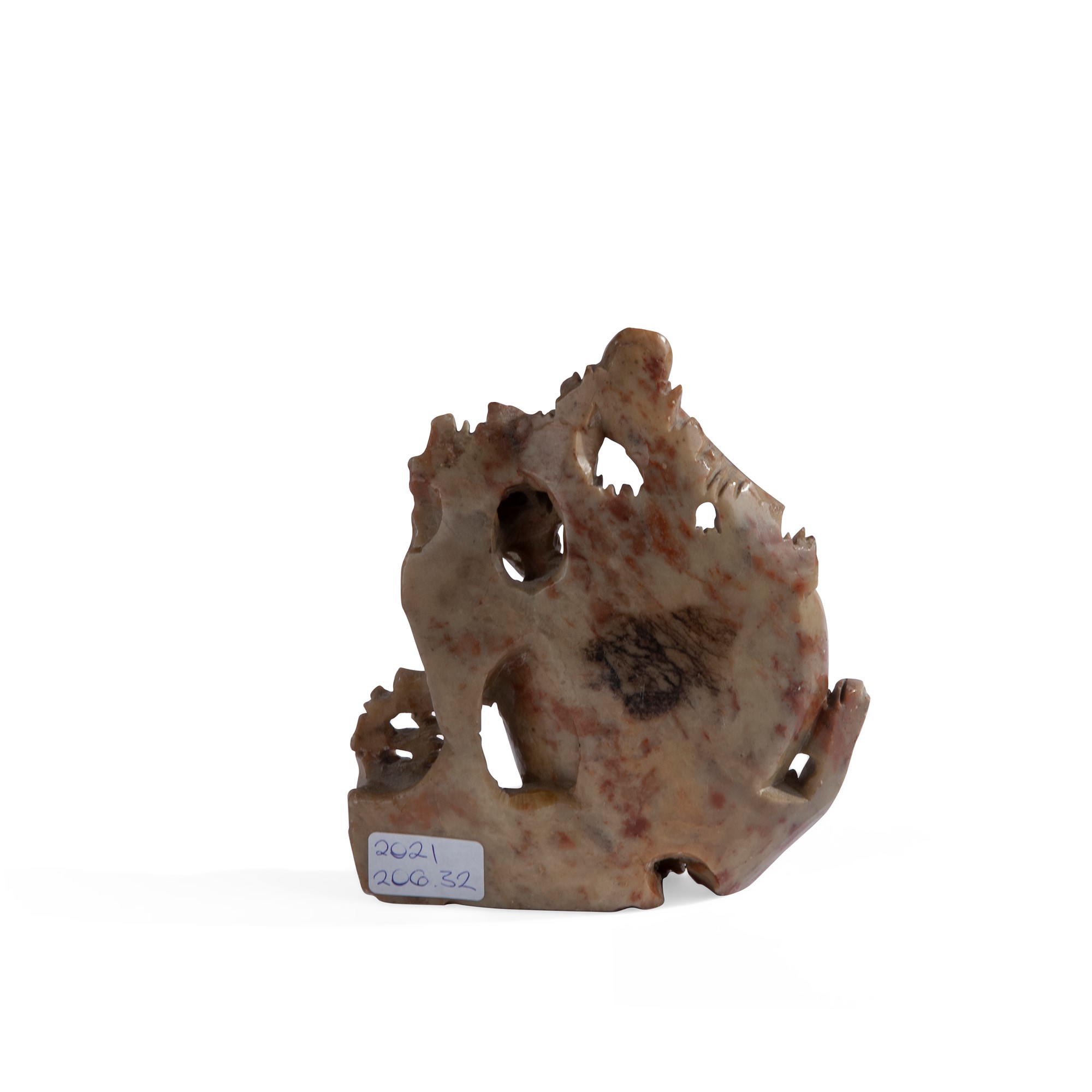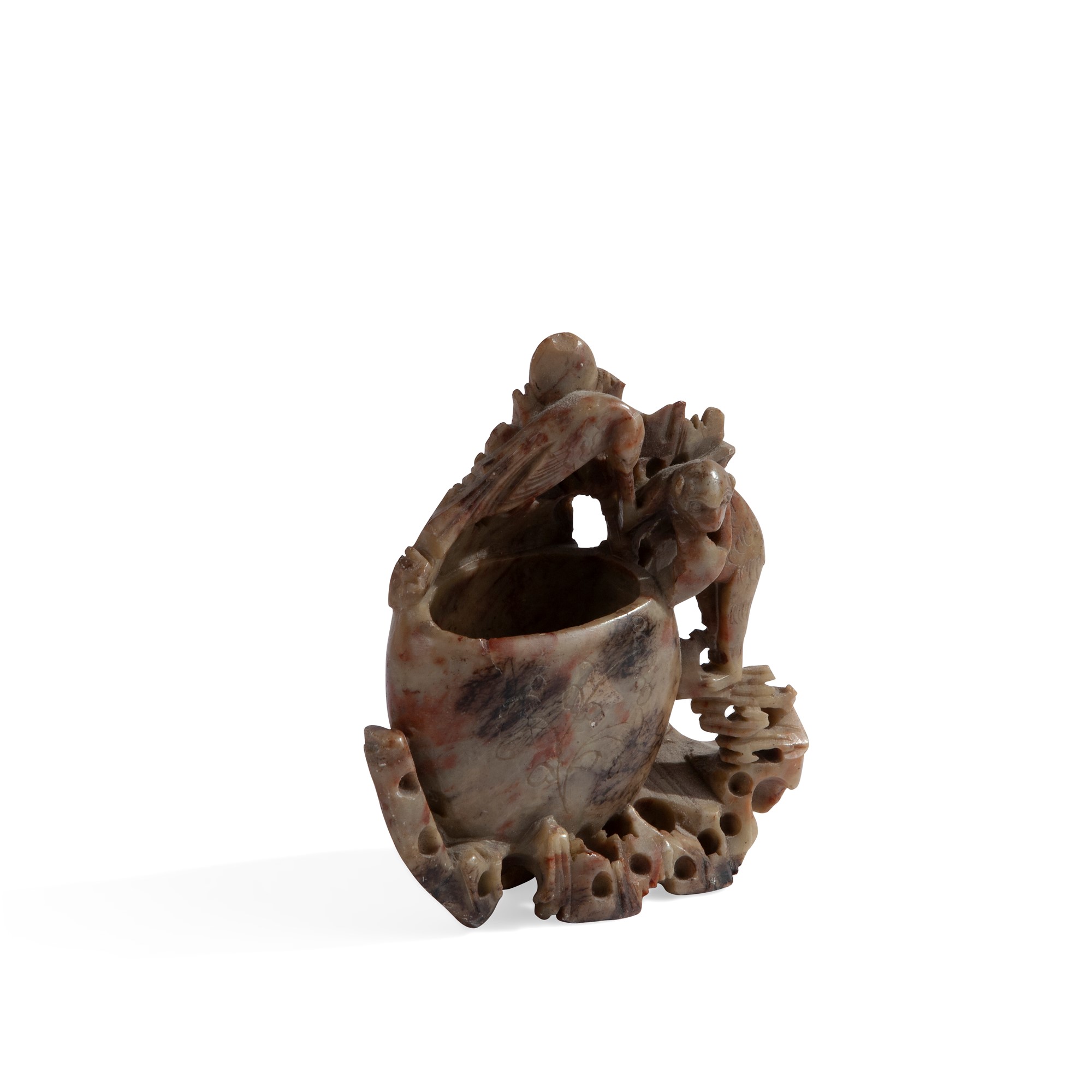 Portafiori in pietra dura, Cina, XX secolo con scimmia e uccello intagliati. Piccole rotture, cm 13x11x4
