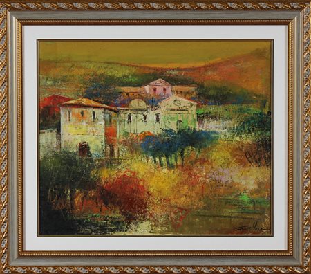 CRIVELLARO GELINDO Ville venete. Olio su tela . Cm 60,00 x 50,00. Firma in...