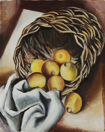 RAINALDI OLIVIERO (n. 1956) Natura morta. Olio su tela . Cm 40,00 x 50,00 x 2,00. Firma in basso. Al retro firma.