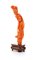 Guan Yin in corallo cerasuolo, Cina, XX secolo su base in legno impreziosita da inserto filiforme in metallo, altezza cm 14 - con la base cm 17 - peso complessivo gr. 120.
