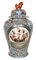 Potiche in porcellana policroma, Cina decorata da un'imbarcazione entro grande medaglione circolare circondato da fitta ornamentazione a ramages blu; coperchio a cupolino sormontato da cane di Pho. Iscrizione in rosso sotto la base, altezza cm 67