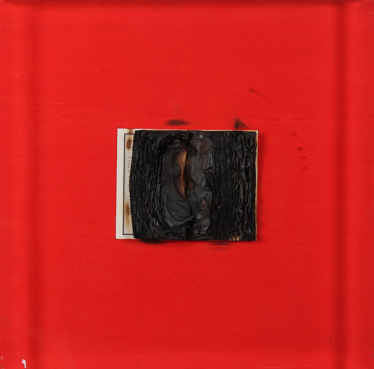 AUBERTIN BERNARD (n. 1934) Senza titolo. 2010. Libro bruciato. Cm 21,00 x 17,00. In teca di plexiglass. Al retro firma e data. Autentica dell'artista su fotografia. Cornice presente
