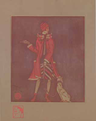 Vito Timmel Vienna 1886 – Trieste 1949 Figura femminile con cane litografia a colori, cm 58x46. Firmato e datato in basso a sinistra: V. Timmel Trieste XXII XII XXV