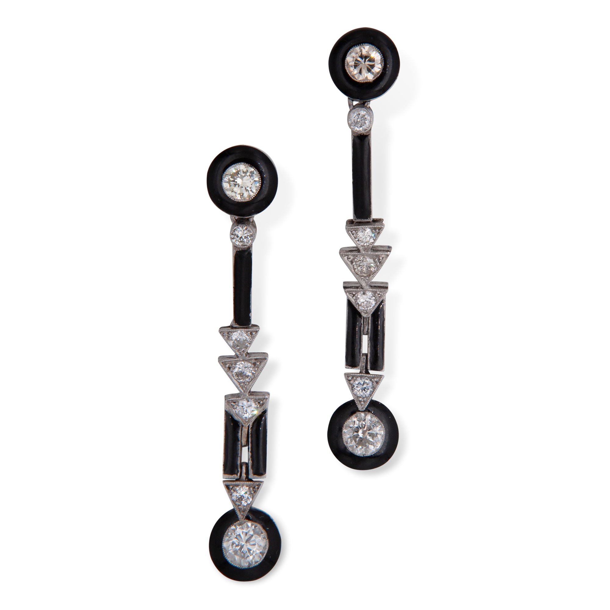 Coppia di orecchini pendenti art decò oro bianco brillanti e onice