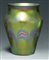 Loetz. Vaso in vetro iridato verde con un decoro di festoni, 1900 circa. Firma incisa. altezza cm 18,5; diametro cm 12