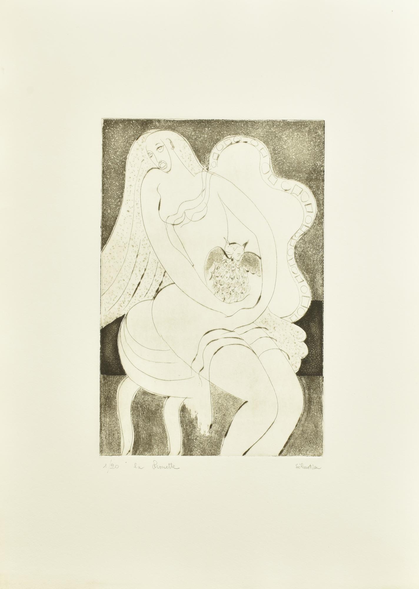 Sebastian LA CHOUETTE incisione su carta, battuta cm 30x20, su foglio cm...