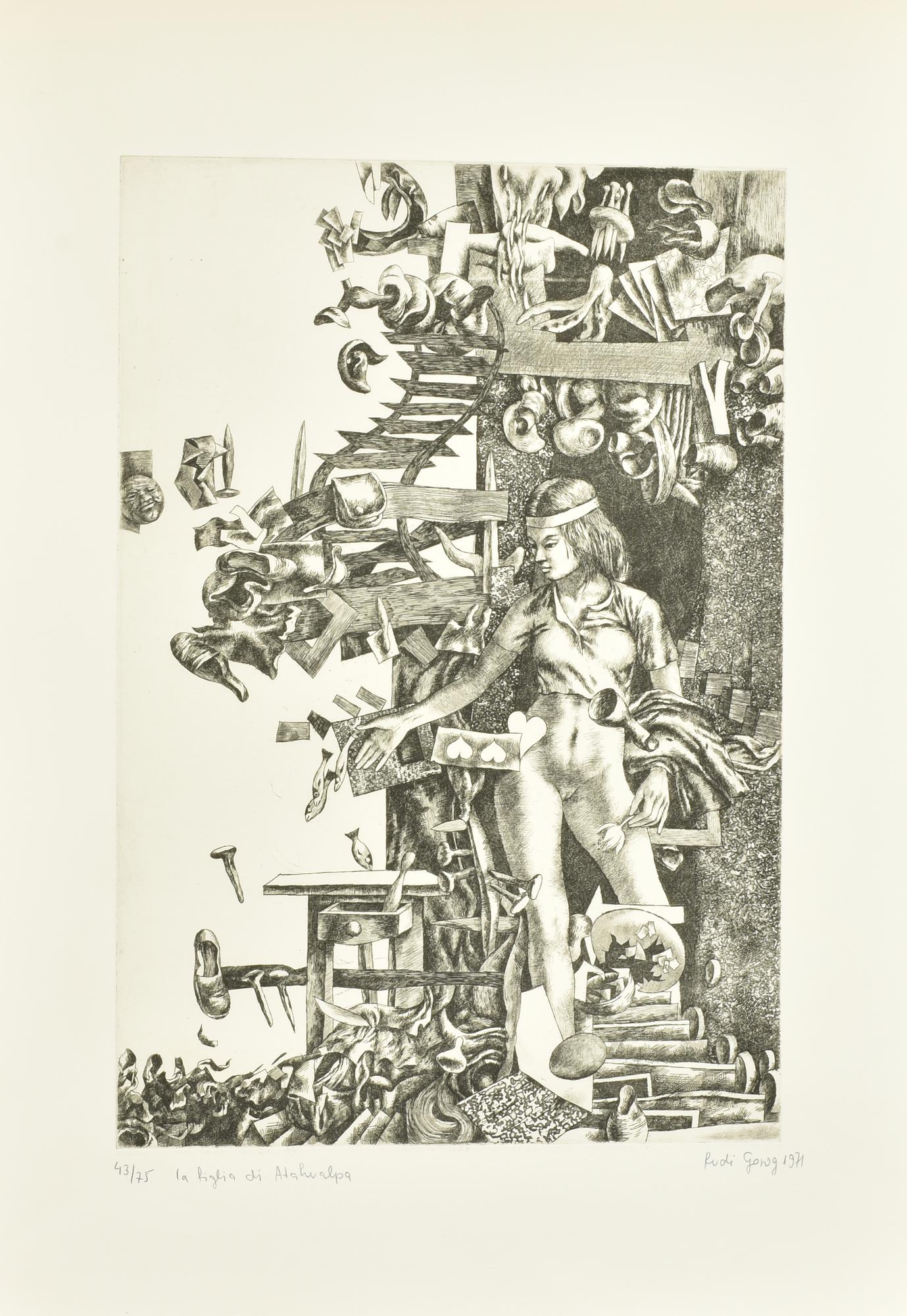 Rudi Gorog LA FIGLIA DI ATAHUALPA incisione su carta Fabriano, battuta cm...