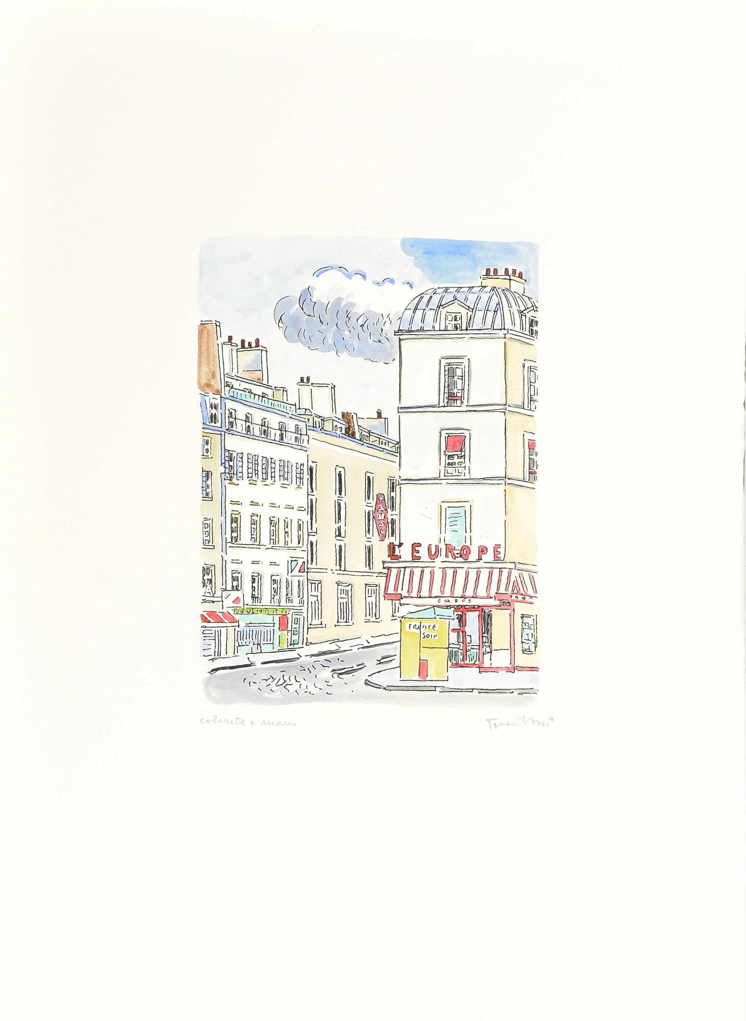 Orfeo Tamburi L'EUROPE incisione su carta colorata a mano, battuta cm 27x20,...