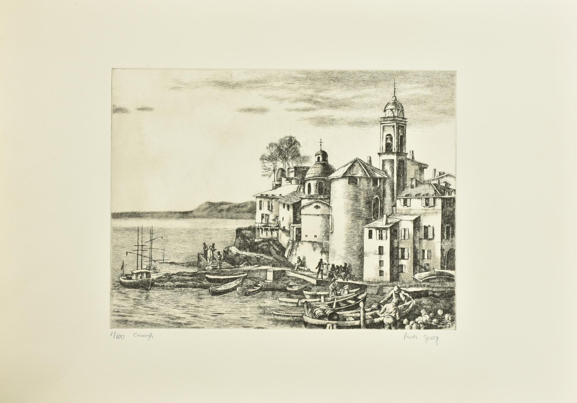Rudi Gorog CAMOGLI incisione su carta Fabriano, battuta cm 30x39, su foglio...