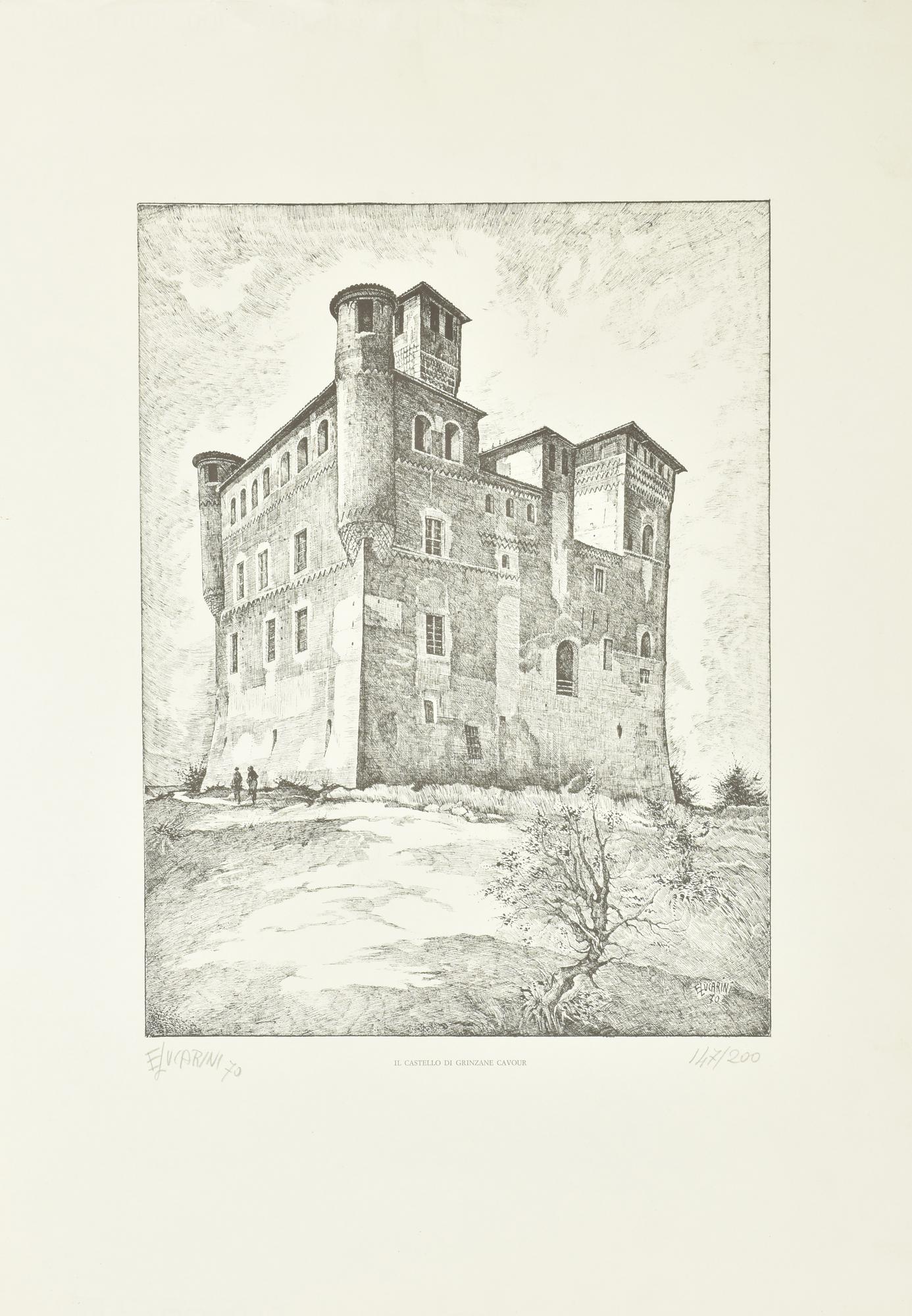 E. Lucarini IL CASTELLO DI GRINZANE CAVOUR stampa su carta, cm 55,5x38; es....