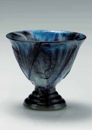 Gabriel Argy-Rousseau. Coppa in “pâte de verre” con un decoro di ventagli e maschere, 1925 circa. Firmata in pasta. altezza cm 13,5; diametro cm 15 Bibliografia: Bloch – Dermant, 25.06
