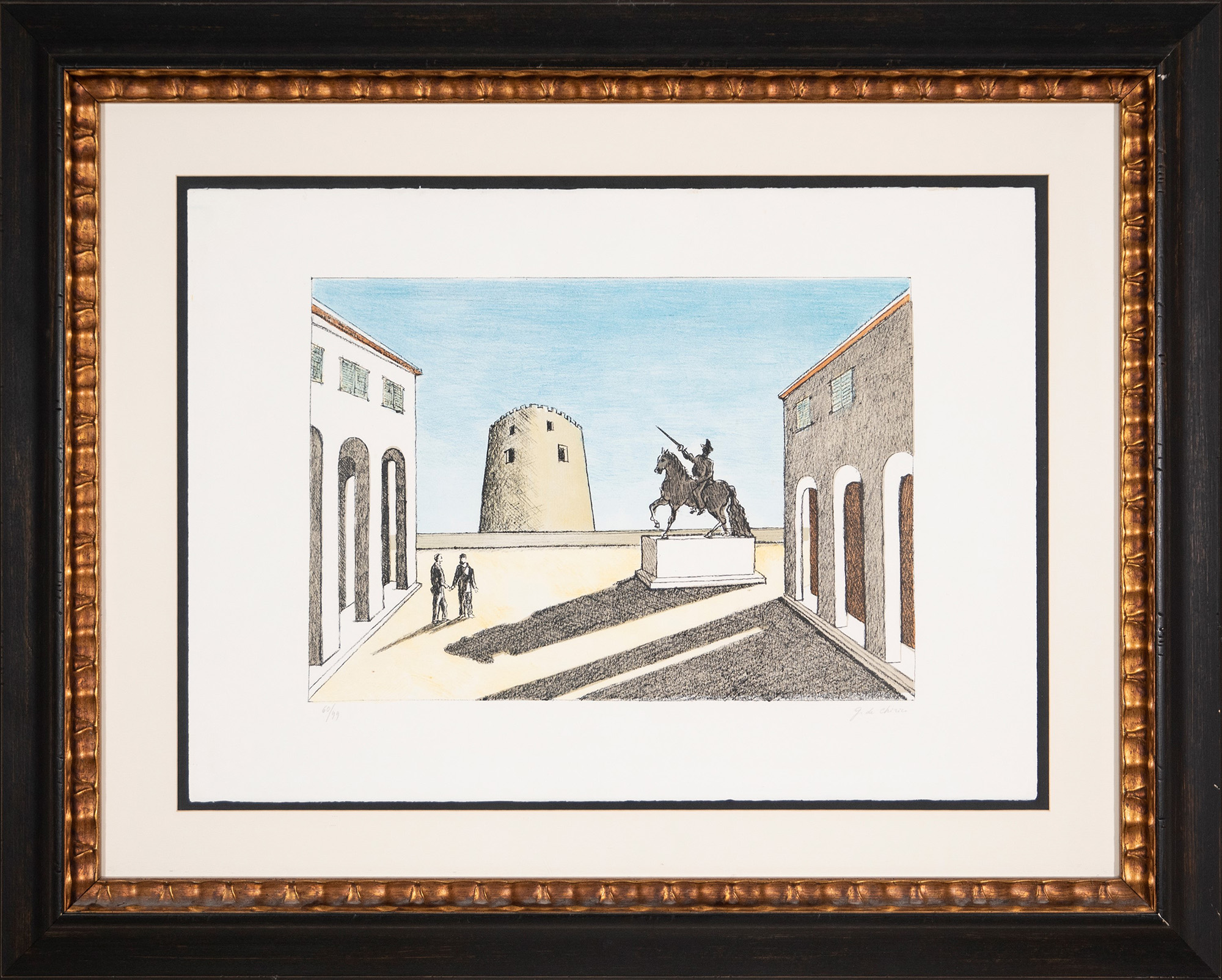 GIORGIO DE CHIRICO, Piazza d'Italia con statua equestre, 1973