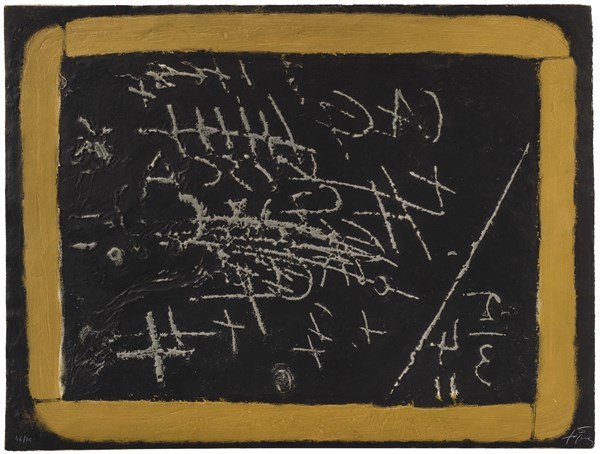 Antoni Tapies "Pissarra" 1972 acquaforte e carborundum a colori cm 58,5x77,5 Fir