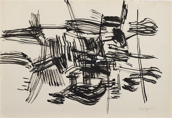 Antonio Sanfilippo "Senza titolo" 1955 inchiostro su carta cm 33x48 Firmato e da