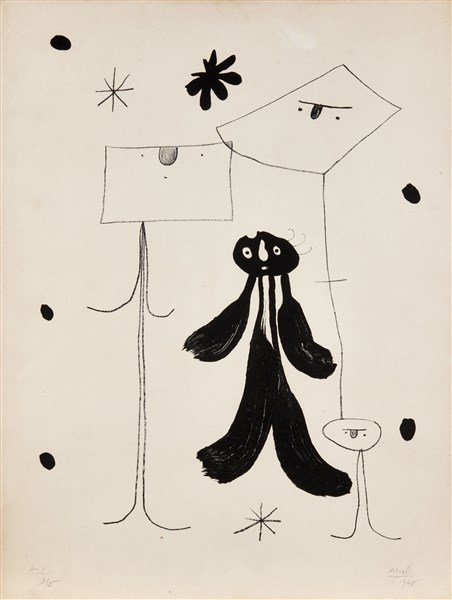 Joan Miró "Les Hommes / Men" 1948 litografia su carta Arches cm 65,5x50 Firmata,