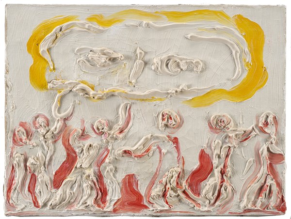 Virgilio Guidi "Figure agitate" 1979 olio su tela cm 30x40 Firmato al retro Pro
