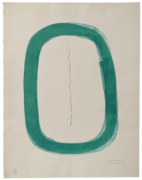 Lucio Fontana "Concetto spaziale" incisione all'acquatinta stampata in verde co