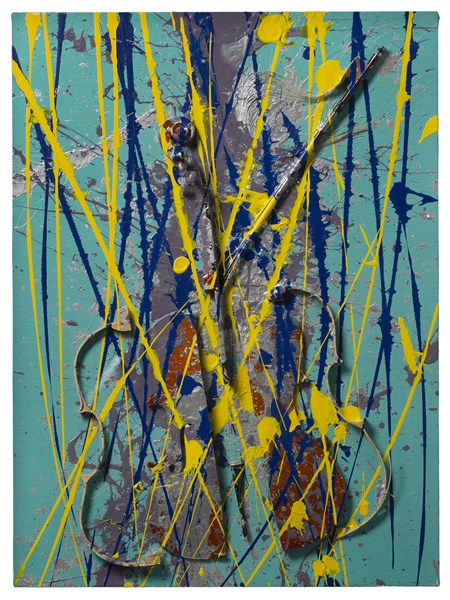 Arman "Senza titolo" 2002acrilico, violino spezzato su tela applicata su tavola