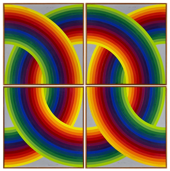 Joel Stein "Senza titolo" 1974acrilico su tavola 4 elementi cm 45x45 cad.ogni el