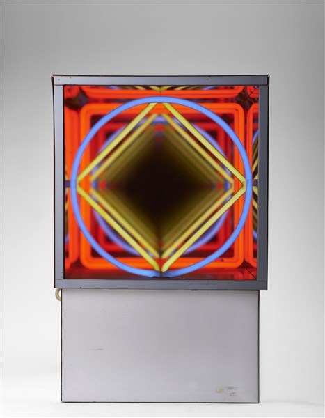 Paolo Scirpa "Ludoscopio n. 47" 1980 installazione luminosa cubo cm 31x31x31; h