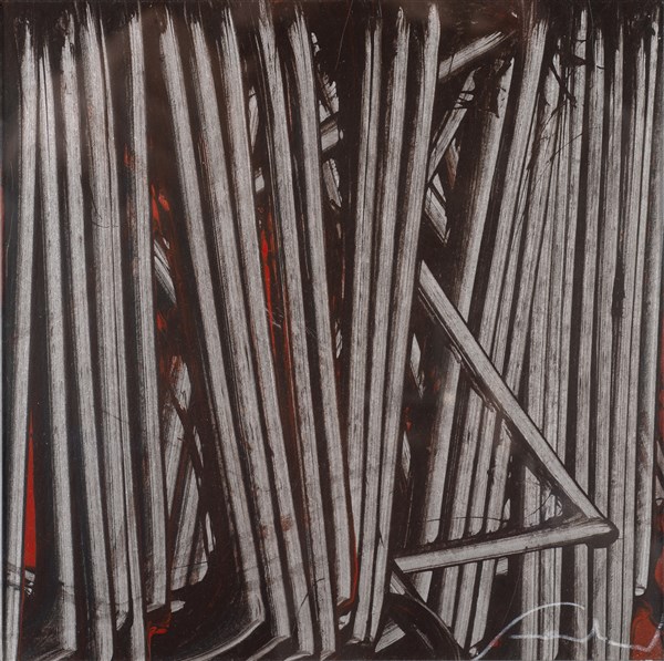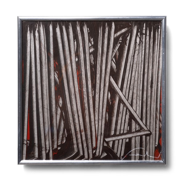 Emilio Scanavino "Acrilico 17" 1975 acrilico su cartone argentato cm 20x20 Firma