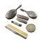 composto da uno specchio a mano, tre spazzole, un pettine, un porta profumo e uno specchietto da borsa