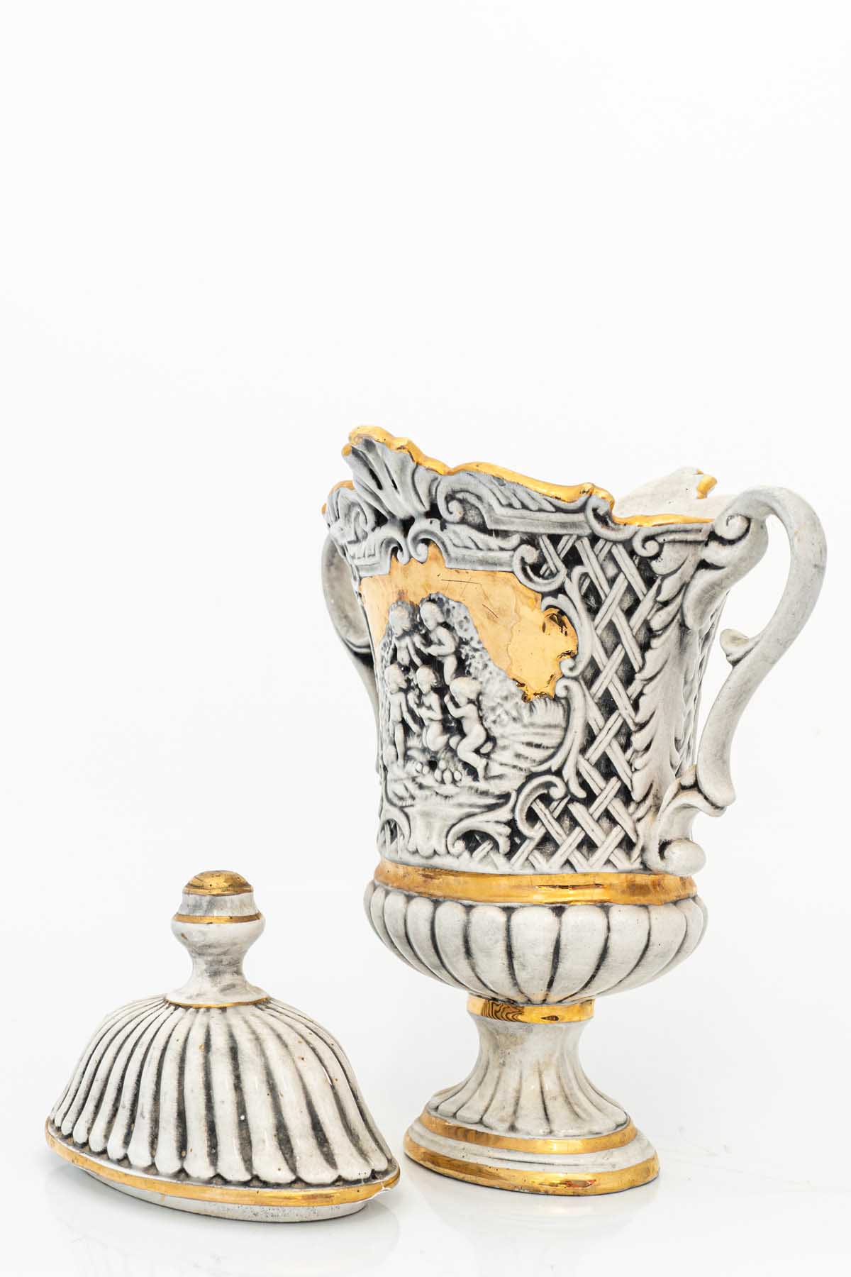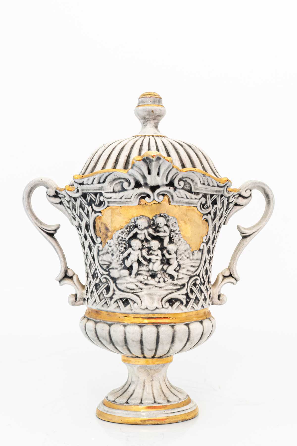 Vaso in ceramica Capodimonte con putti in bassorilievo