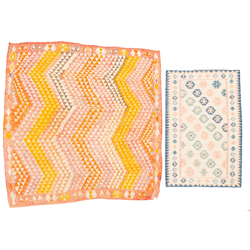 Tappeto Kilim trama in lana ed ordito in cotone.