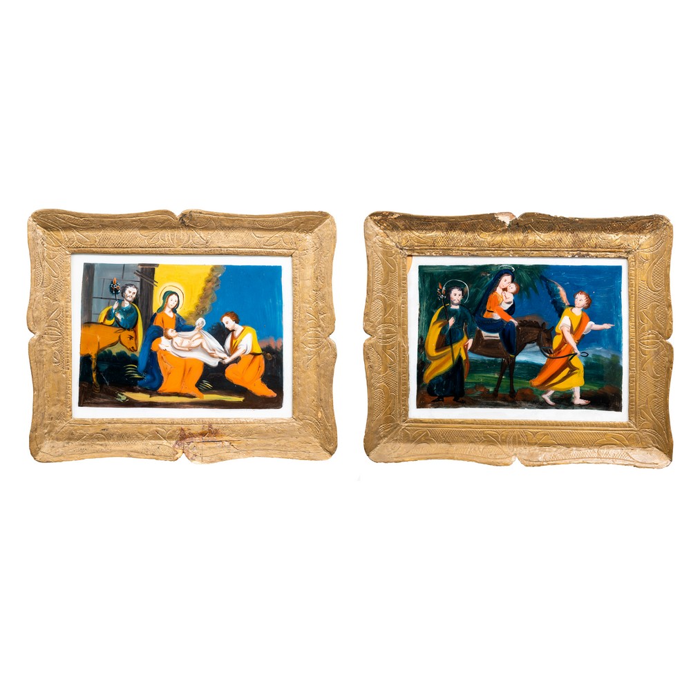 SCUOLA SICILIANA DEL XIX SECOLO, Coppia di pitture su vetro