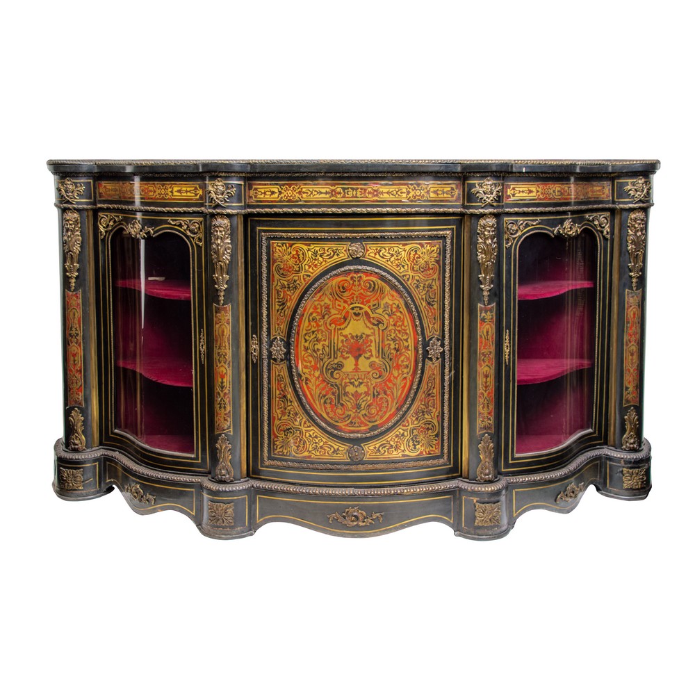 IMPORTANTE SERVANTE BOULLE a più movimenti in legno di ebano con tarsie in rame e tartaruga, elementi in bronzo.