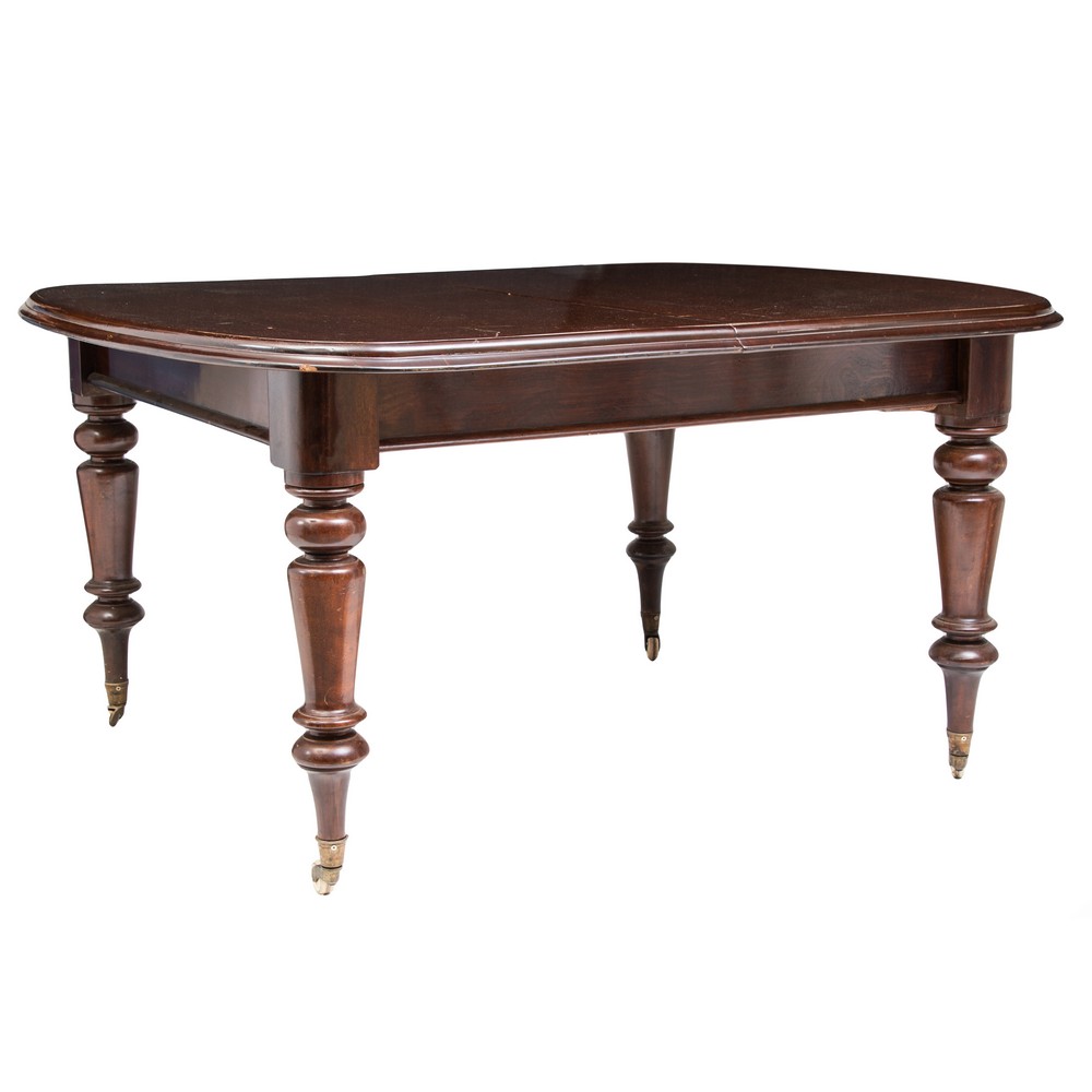 TAVOLO allungabile con manovella e quattro sedie in legno di mogano (due allunghi).