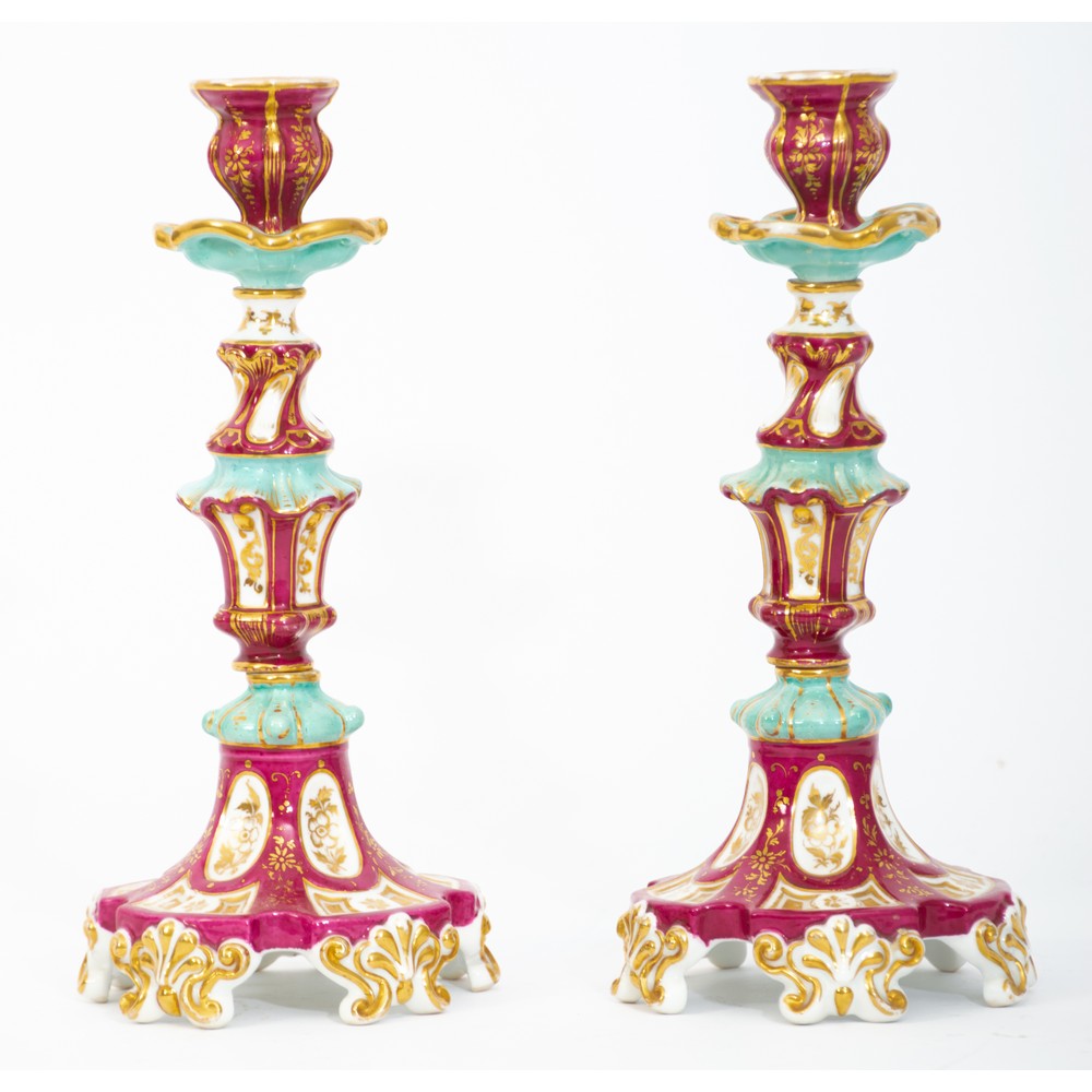 COPPIA DI MONOCERA Luigi Filippo in porcellana dipinta e lumeggiata in oro.