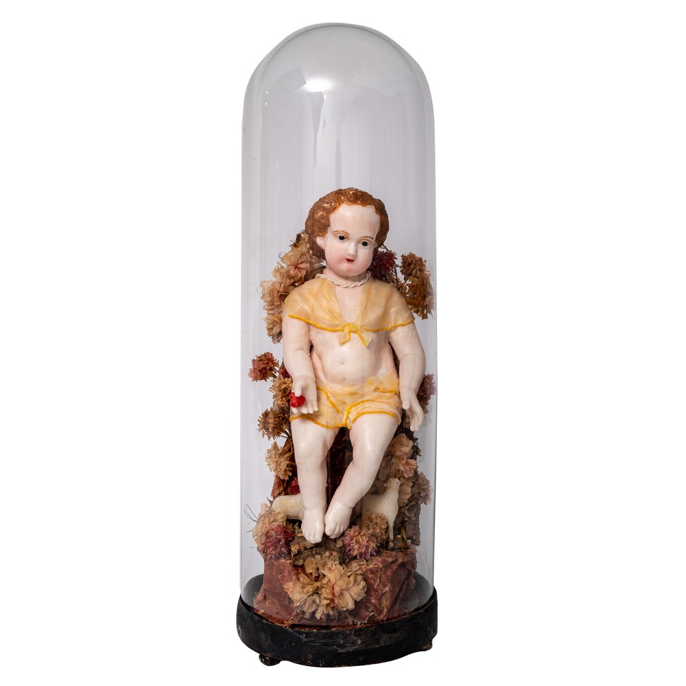 MANIFATTURA SICILIANA XIX SEC, Bambinello in ceroplastica