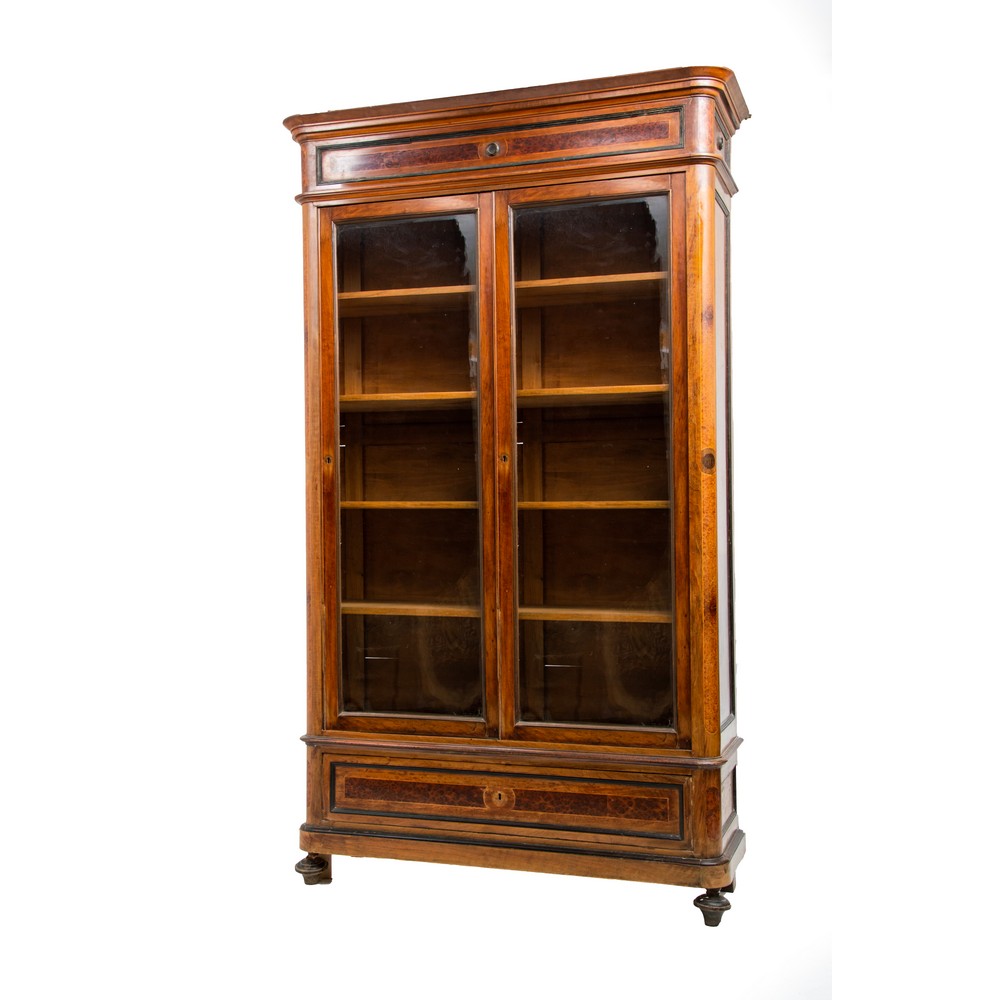 LIBRERIA a due ante in palissandro e radica di olmo, tarsie in bosso.
