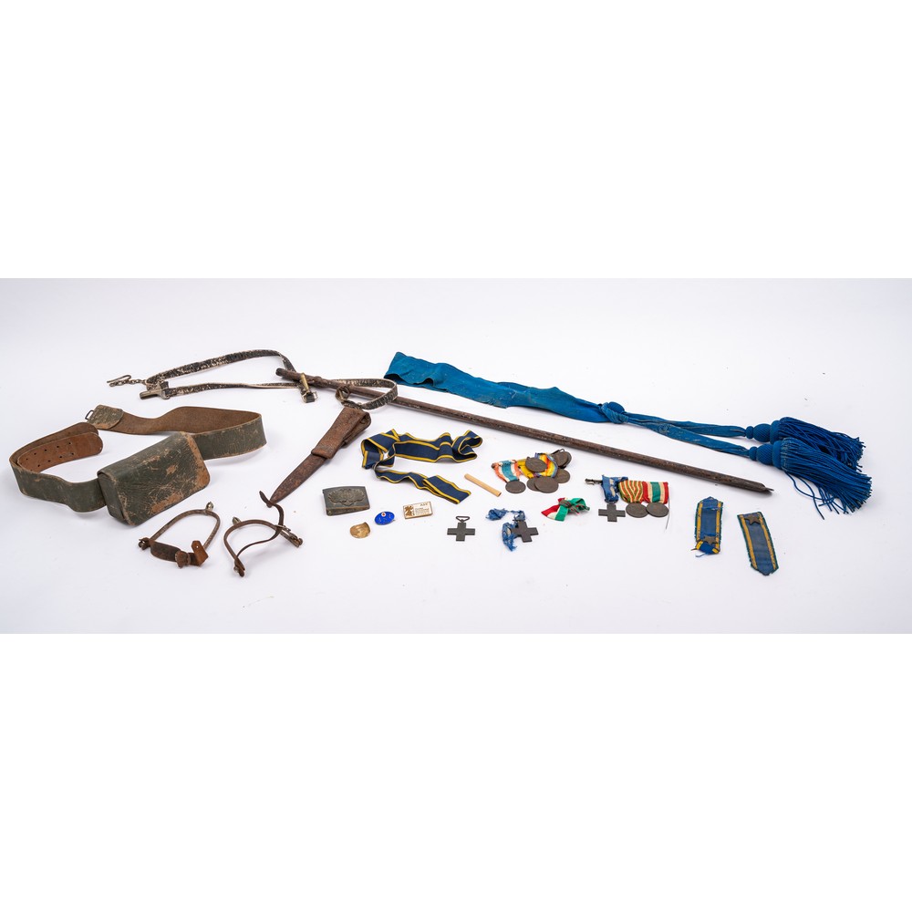 appartenuti a militari composto da medaglie, fregi/gradi, fascia, custodia proiettili, staffe, fodero baionetta e fodero spada.