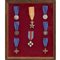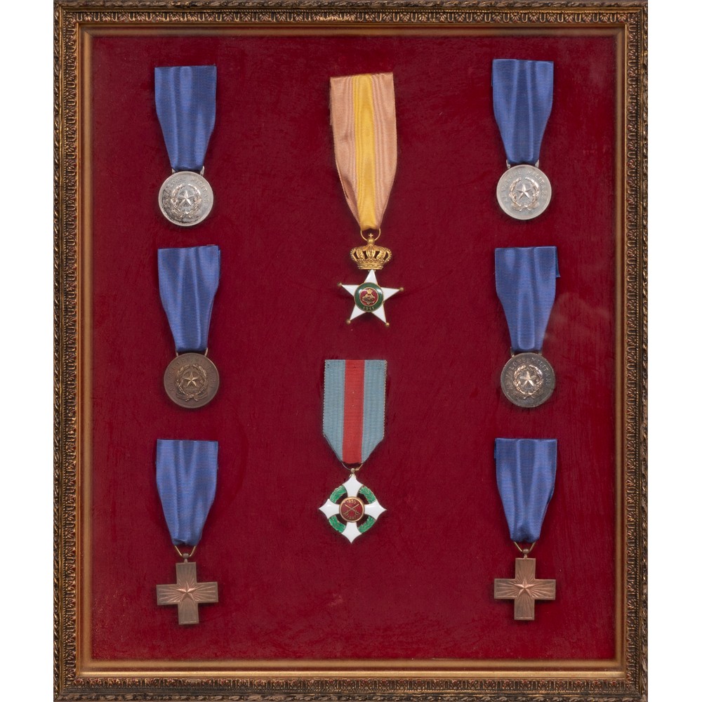 OTTO MEDAGLIE al valore militare in bronzo, argento e smalti entro teca.
