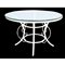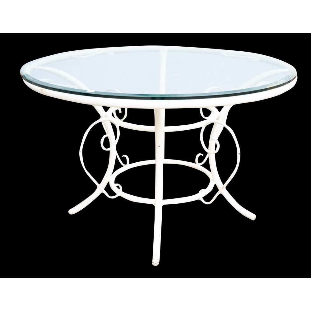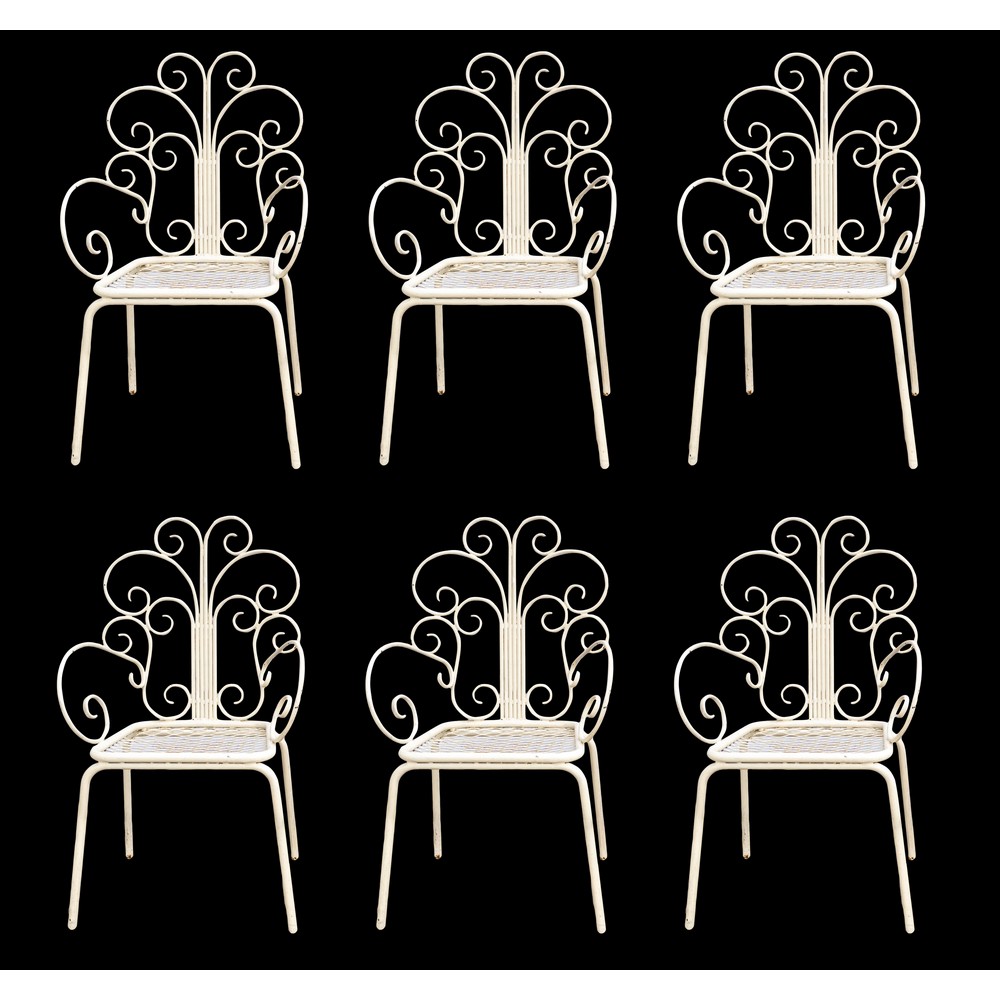 TAVOLO e sei poltroncine in ferro laccato bianco, piano in vetro.